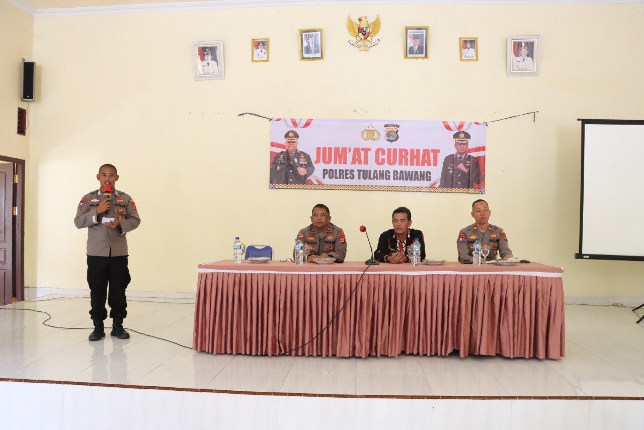 Tulang Bawang Lampung, benualampung.com – Satuan Pembinaan Masyarakat (Sat Binmas) Polres Tulang Bawang, Polda Lampung, melaksanakan kegiatan mendengarkan langsung aspirasi dan informasi dari warga yang diberi nama Jum’at Curahan Hati (Curhat).