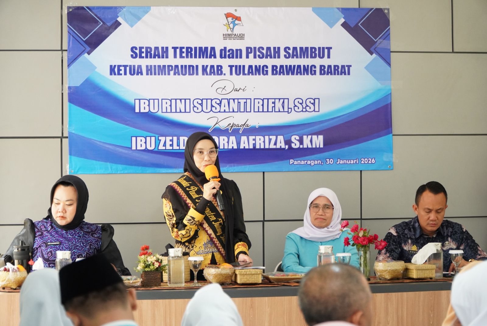 Dalam sambutannya, Bunda PAUD menyampaikan bahwa pertemuan tersebut dilandasi oleh rasa cinta terhadap dunia pendidikan anak usia dini, cinta kepada anak-anak, serta kepedulian terhadap masa depan generasi penerus daerah. Ia mengucapkan selamat kepada Ibu Zelda Nora Afriza, S.K.M yang resmi dikukuhkan sebagai Ketua Pengurus Daerah HIMPAUDI Kabupaten Tulang Bawang Barat yang baru beserta jajaran pengurus. Ia berharap kepengurusan baru mampu melahirkan karya dan pengabdian nyata dalam mendukung tumbuh kembang anak-anak sebagai generasi masa depan daerah.