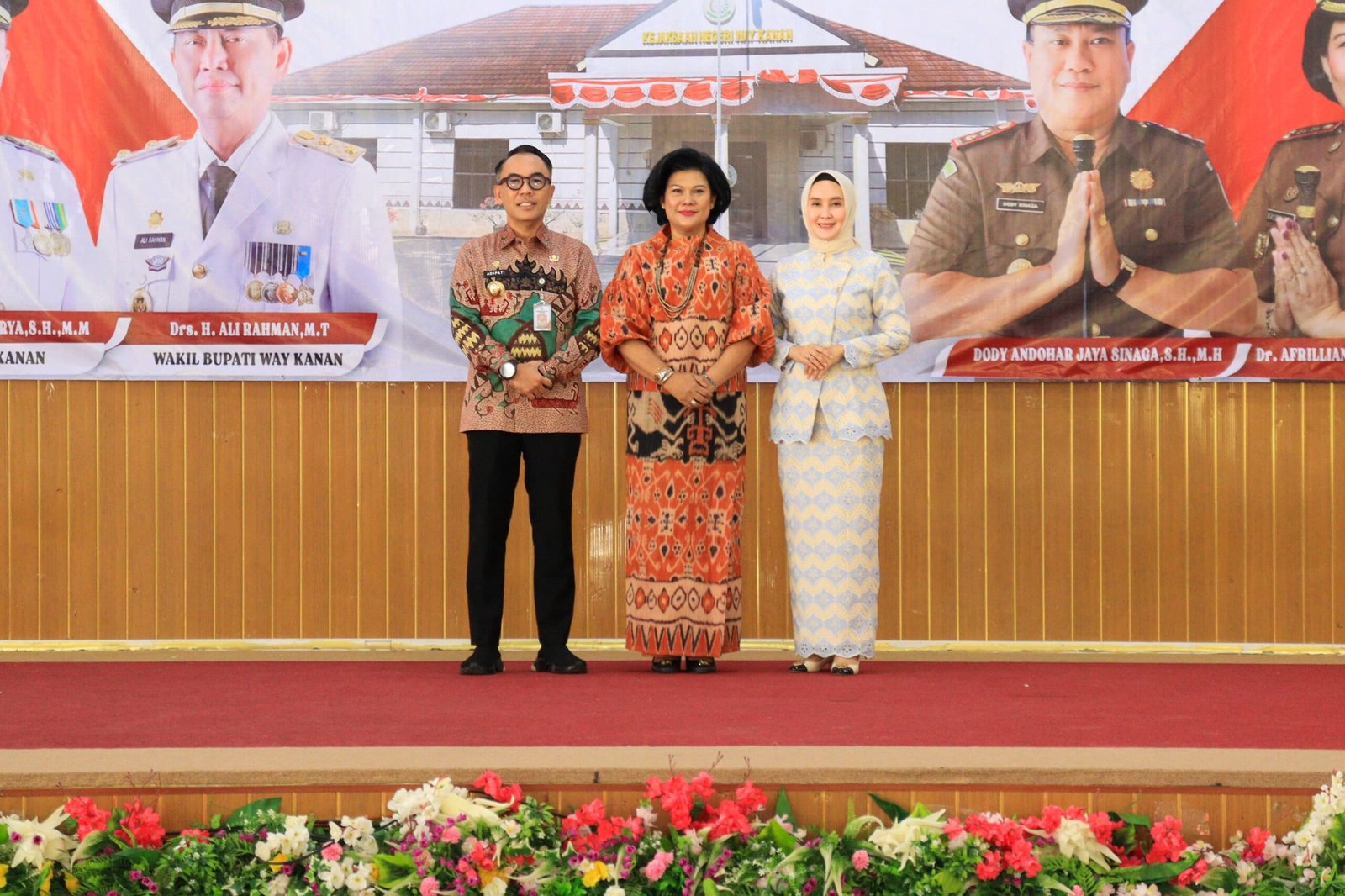 WAY KANAN, BENUALAMPUNG.COM – Bupati H. Raden Adipati Surya, S.H.,M.M bersama Wakil Bupati Drs. H. Ali Rahman, M.T menghadiri Acara Pisah Sambut Kepala Kejaksaan Negeri Kabupaten Way Kanan di Gedung Pusiban, Kamis (12/09/2024). Yang juga dihadiri oleh Ketua Tim Penggerak PKK Kabupaten, Ibu Hj. Dessy Afriyanti Adipati, Anggota Forum Komunikasi Pimpinan Daerah, Sekretaris Daerah Kabupaten, Saipul, S.Sos.,M.IP, para Staf Ahli Bupati, para Asisten Setdakab, jajaran Kepala OPD, Instansi Vertikal, para Kepala Bagian Setdakab, serta Pimpinan Kecamatan Blambangan Umpu dan Kecamatan Umpu Semenguk, serta Organisasi Wanita Forkopimda.