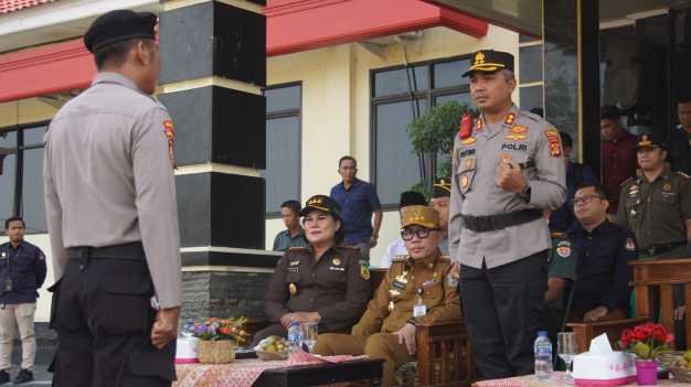 Kapolres Way Kanan, AKBP Pratmo Wudodo membacakan amanat Kapolri mengatakan bahwa Apel Gelar Pasukan merupakan bentuk pengecekan akhir kesiapan personel maupun sarpras Operasi Mantap Brata 2023-2024, sehingga Pemilu 2024 diharapkan dapat terselenggara dengan aman dan lancar.