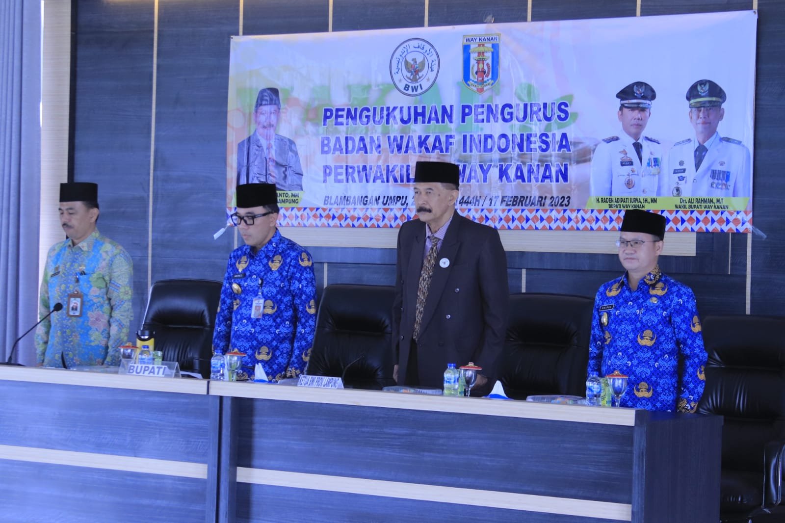 Way Kanan, benualampung.com – Bupati H. Raden Adipati Surya, S.H.,M.M menghadiri Pelantikan Pengurus Badan Wakaf Indonesia (BWI) Kabupaten Way Kanan di Ruang Rapat Lt. III Pemkab Way Kanan, Senin (17/02/2023).