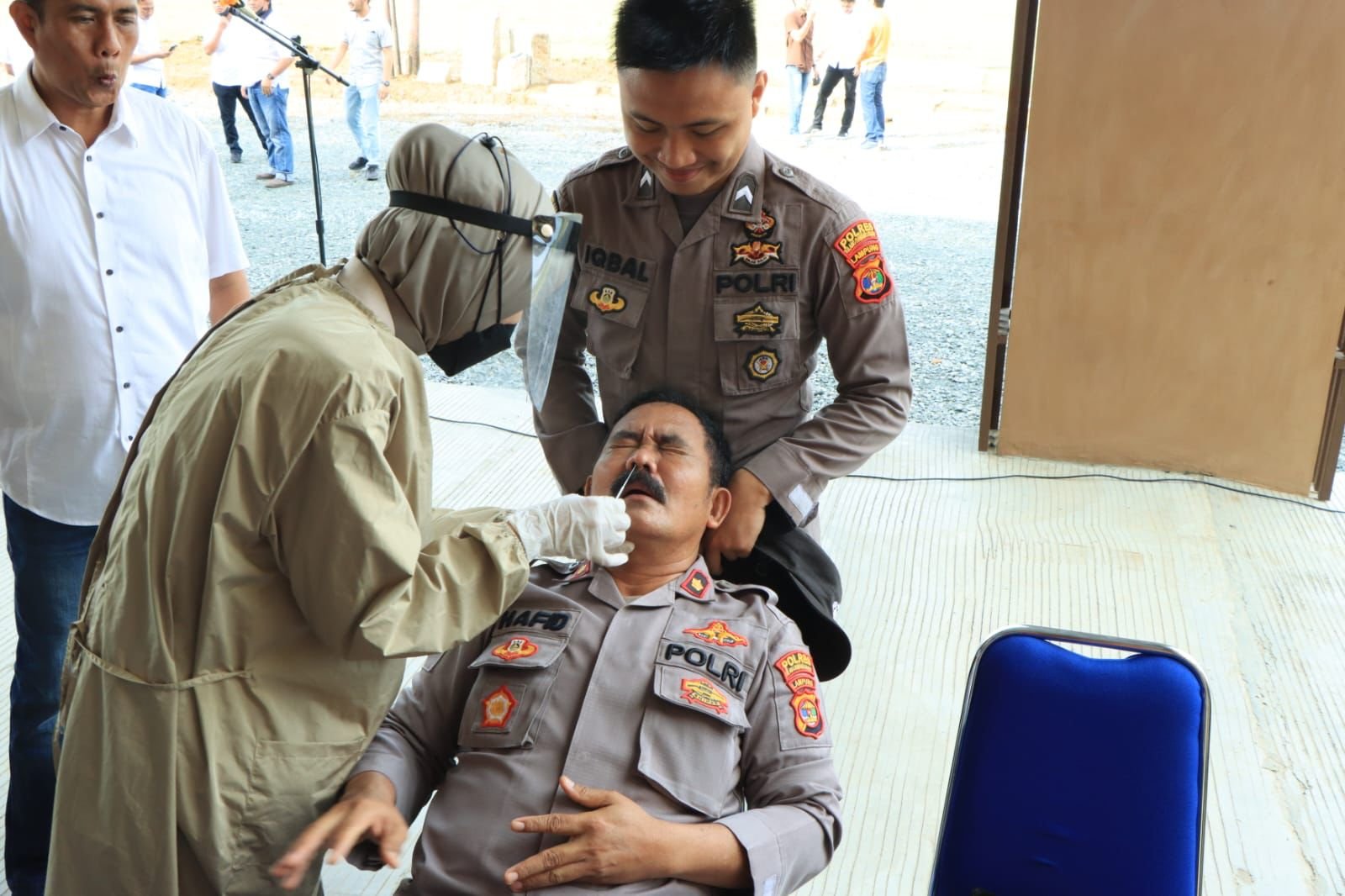 Dari hasil test yang di lakukan oleh petugas kesehatan, Kapolres berharap agar seluruh personel tetap menjalankan protokol kesehatan melalui 5M.