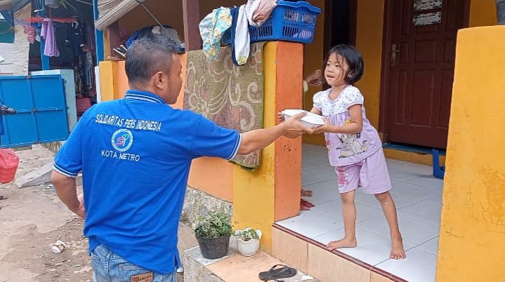 Sebanyak puluhan paket nasi di bagikan DPD Solidaritas Pers Indonisia (SPI) Kota Metro, untuk warga yang terdampak banjir di sebagian wilayah Kelurahan Yosorejo, Kecamatan Metro Timur, Kota Metro.