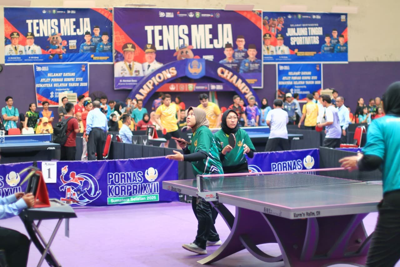 Palembang, Benualampung.com — Kabar membanggakan datang dari arena Pekan Olahraga Nasional (Pornas) Korpri XVII tahun 2025 di Palembang. Tim Tenis Meja nomor Ganda Putri Umum Provinsi Lampung sukses mempersembahkan medali perak pertama bagi kontingen Lampung pada pertandingan yang digelar di Pitstop Table Tennis Centre, Palembang, Kamis (09/10/2025).