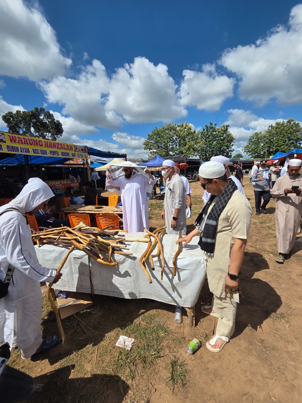 Pantauan di lokasi menunjukkan ratusan lapak kuliner, warung harian, penjual kebutuhan dasar, serta pedagang minuman dan makanan siap saji ramai oleh jamaah. Beberapa pedagang mengaku omset naik hingga beberapa kali lipat dibanding hari biasa.