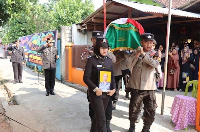 Upacara pemakaman anggota anggota Polres Way Kanan yang meninggal dunia tersebut dipimpin langsung oleh Kapolres Metro AKBP Heri Sulistyo Nugroho, S.IK., M.IK yang dilaksanakan di Tempat Pemakaman Umum (TPU) Kampung Banten, Kel iringmulyo Kec. Metro Timur Kota Metro.