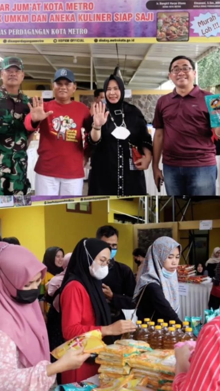 Kepala Dinas Perdagangan Kota Metro Elmanina, melaporkan bahwa kebutuhan pokok yang dijual pada Bazar Jum’at diantaranya seperti gula pasir, minyak goreng, mie, kecap, telur, bawang merah, bawang putih, dan lain sebagainya.