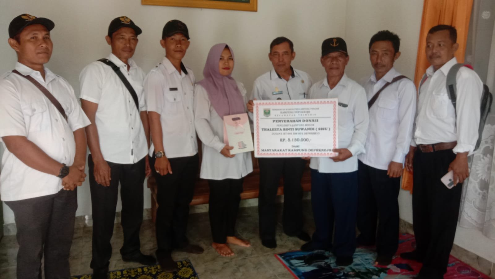 Dalam kunjungan tersebut “Sukidi” selaku kepala kampung beserta pamong kampung mewakili warga depokrejo untuk melaksanakan niat nya menyerahkan bantuan donasi dari warga depokrejo untuk balita Putri dari bapak “Suwandi” yang diduga menderita sakit jantung bocor