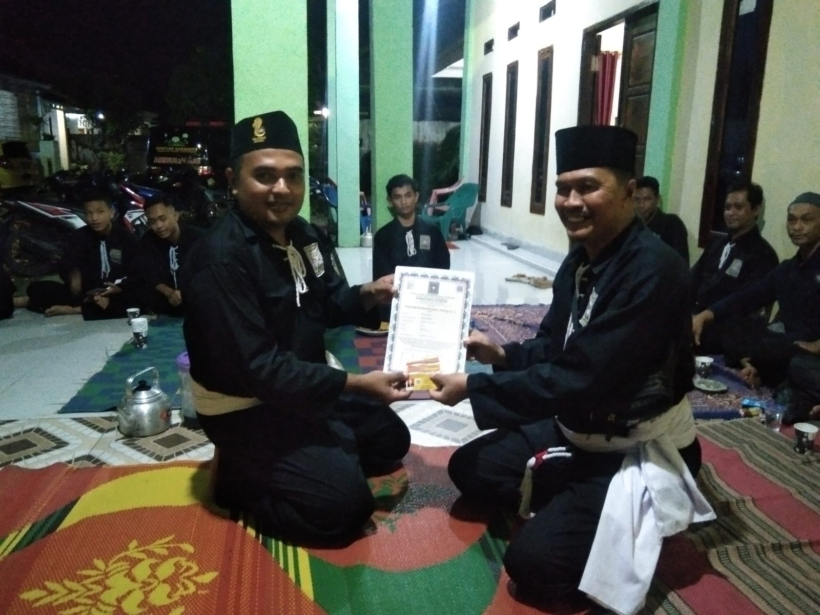 Ketua Rating PSHT Baradatu menyerahkan secara langsung KTA di Rayon Tiuh Balak Satu.