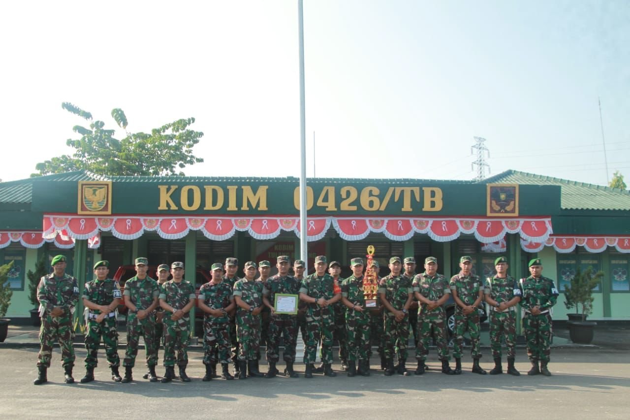 Dandim 0426 Tulang Bawang, Letkol Inf Triano Iqbal,S.I.P., M.Si. saat menyerahkan piala kepada anggotanya berharap keberhasilan anggotanya dalam menggocek kulit bundar dalam pertandingan beberapa waktu lalu di lapangan Stadion Tiuh Tohou Menggala, Kabupaten Tulang Bawang dapat menjadi motivasi untuk semangat dalam berolahraga.