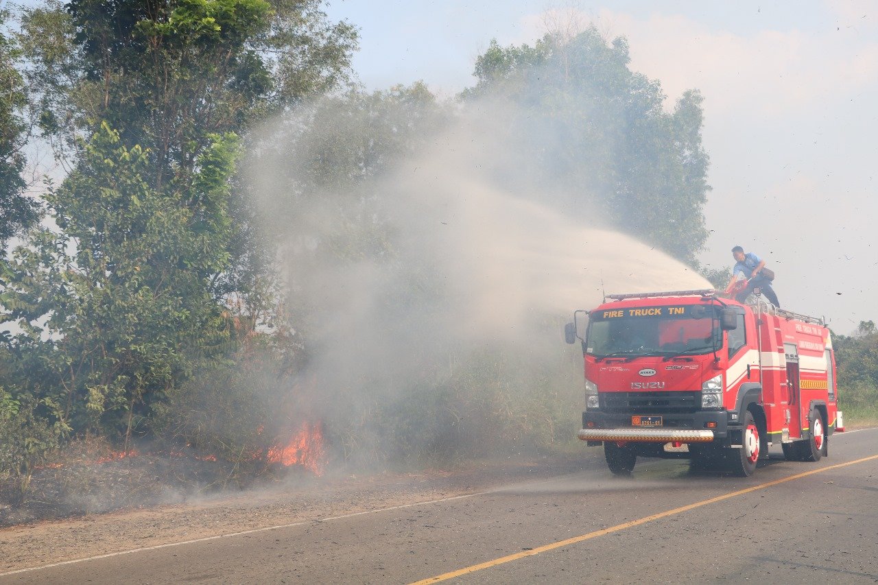 Upaya pemadaman tersebut dilakukan secara manual ke titik api oleh para prajurit dibawah Pimpinan langsung Komandan Lanud Pangeran M. Bun Yamin (Danlanud BNY) Letkol Pnb Yosi Hadi Wiyanto dengan menggunakan kendaraan Truk Isuzu FTR beserta Regu pemadam kebakaran yang dimiliki Lanud BNY.