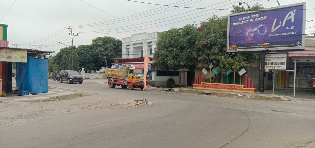 Metro,benualampung.com – hari ini kenbali nampak umbul umbul bendera terpasang berdiri tegak di tengah jalan yang berlubang di lokasi pertigaan 24 Tejo Agung Metro Timur yang di duga untuk pertanda adanya jalan yang berlubang dilokasi setempat.senin(24/07/2023)