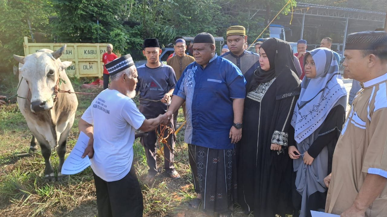 Kegiatan diawali dengan penyerahan secara simbolis hewan kurban berupa satu ekor sapi oleh Kapolres Tulang Bawang, AKBP Jibrael Bata Awi, SIK, dengan didampingi Ketua Bhayangkarai Cabang Tulang Bawang, Ny. Ros Jibarel Bata Awi kepada panitia penyembelihan hewan kurban.