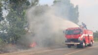 Lahan Ilalang Terbakar, Prajurit Lanud BNY Sigap Padamkan Api di Jalan Lintas Timur Sumatera