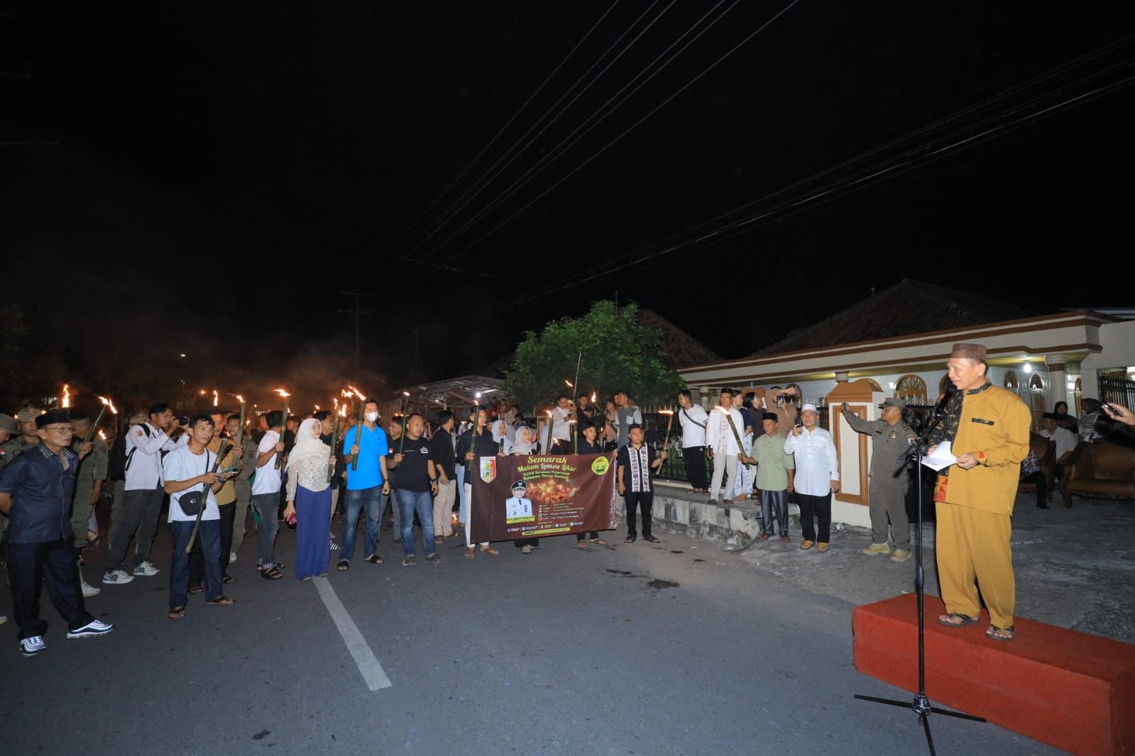 Pawai Obor Malam Limou Likur diikuti oleh ratusan warga Masyarakat Tulang Bawang baik dari KSBM, Perwakilan seluruh OPD Pemkab Tulang Bawang, Sekolah serta masyarakat khususnya kecamatan Menggala Kabupaten Tulang Bawang. (Yuhari)