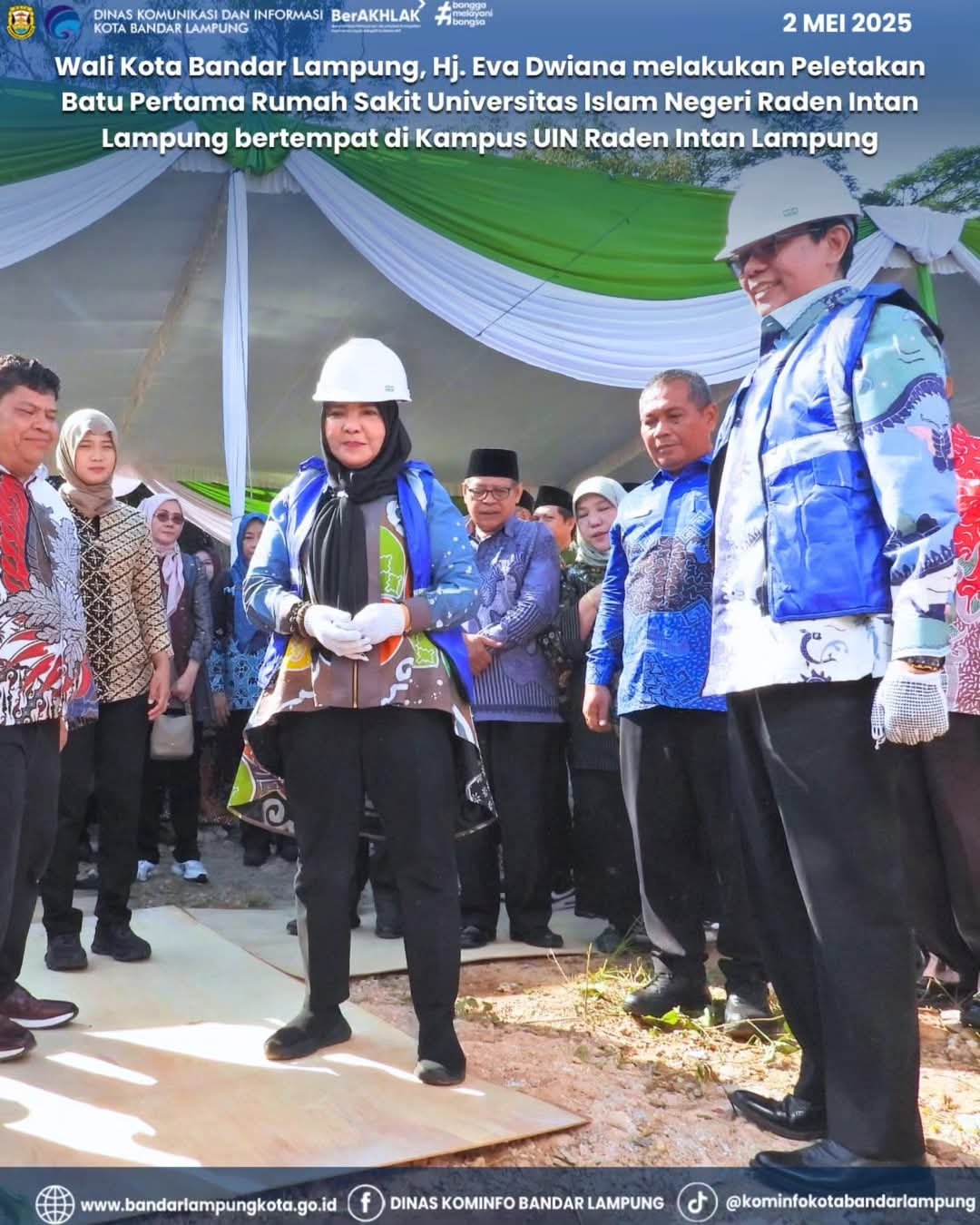 Bandar Lampung, Benualampung.com – Walikota Bandar Lampung, Hj. Eva Dwiana melakukan Peletakan Batu Pertama Rumah Sakit Universitas Islam Negeri Raden Intan Lampung bertempat di Kampus UIN Raden Intan Lampung pada Jumat (02/05/2025).