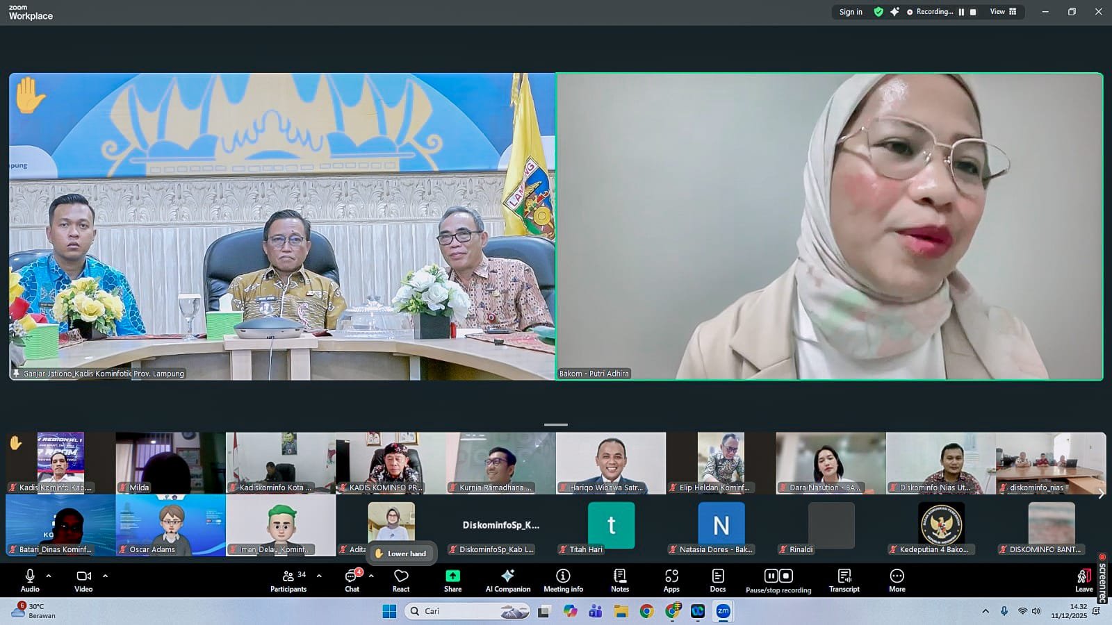 Bandar Lampung, Benualampung.com – Kepala Dinas Komunikasi, Informatika dan Statistik (Kominfotik) Provinsi Lampung, Ganjar Jationo, mengikuti rapat koordinasi penanganan informasi kebencanaan yang digelar Badan Komunikasi Pemerintah (Bakom) Republik Indonesia secara daring di Ruang Command Center Lantai 2 Dinas Kominfotik Provinsi Lampung, Kamis (11/12/2025)