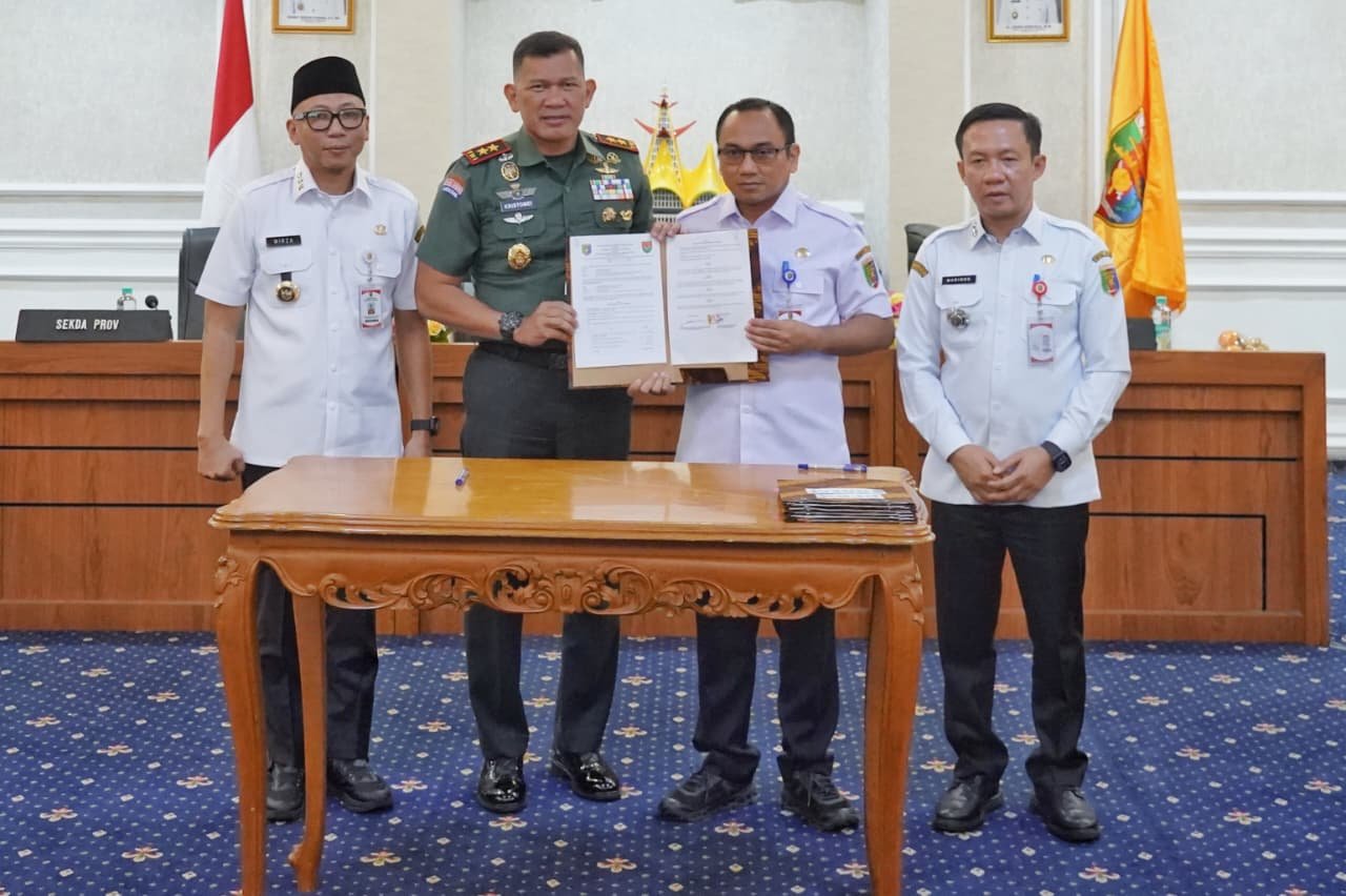 Penandatanganan dilakulan oleh Plt. Badan Pengelolaan Keuangan dan Aset Daerah (BPKAD) Provinsi Lampung, Nurul Fajri, Pangdam XXI/Radin Inten Mayjen Kristomei Sianturi, Danrem 043/Garuda Hitam Brigjen Haryantana dan perwakilan dari unsur TNI dan Polri.
