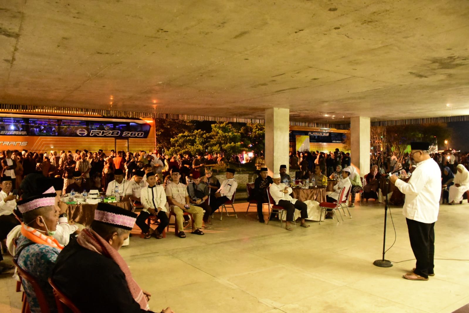 “Hari ini, jamaah haji Kabupaten Tubaba telah pulang dan berada di tengah-tengah kita semua. Kami dengan penuh kebahagiaan menyampaikan ucapan selamat datang kembali di tiyuh(desa) halaman kepada saudara-saudara yang baru saja melakukan rangkaian perjalanan ibadah haji di Tanah Suci Mekkah,” ujar Rasidi, Asisten Bidang Administrasi Umum saat membacakan sambutan Penjabat Bupati Tubaba.