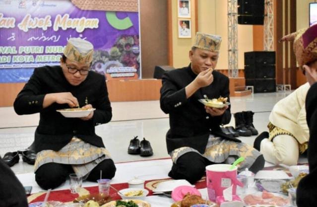 Metro,benualampung.com – Pemerintah Kota Metro Metro melalui Dinas Pendidikan dan Kebudayaan Kota Metro, menggelar acara adat Lampung yaitu Cuwak dan Awek Mengan. Acara adat ini adalah rangkaian kegiatan Festival Putri Nuban dalam rangka peringatan Hari Jadi Kota Metro yang ke 86 tahun.