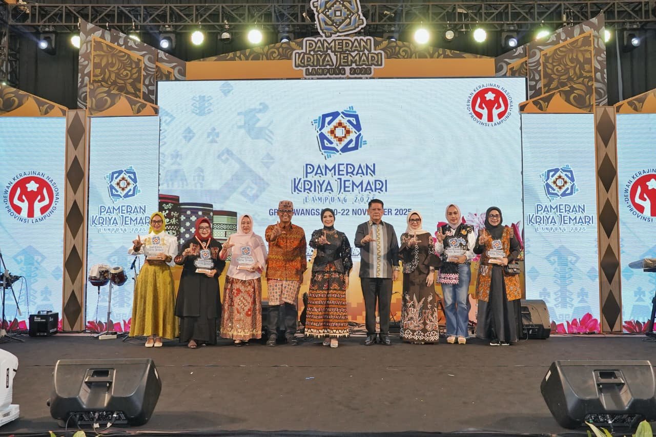 BANDAR LAMPUNG, Benualampung.com — Pemerintah Provinsi Lampung bersama Dewan Kerajinan Nasional Daerah (Dekranasda) Provinsi Lampung sukses menggelar Pameran Kriya Jemari 2025 selama tiga hari di Gedung Graha Wangsa, Bandar Lampung, 20–22 November 2025. Penutupan pameran dilakukan oleh Asisten Pemerintahan dan Kesra Setda Provinsi Lampung, M. Firsada, mewakili Gubernur Lampung Rahmat Mirzani Djausal, Sabtu (22/11/2025).