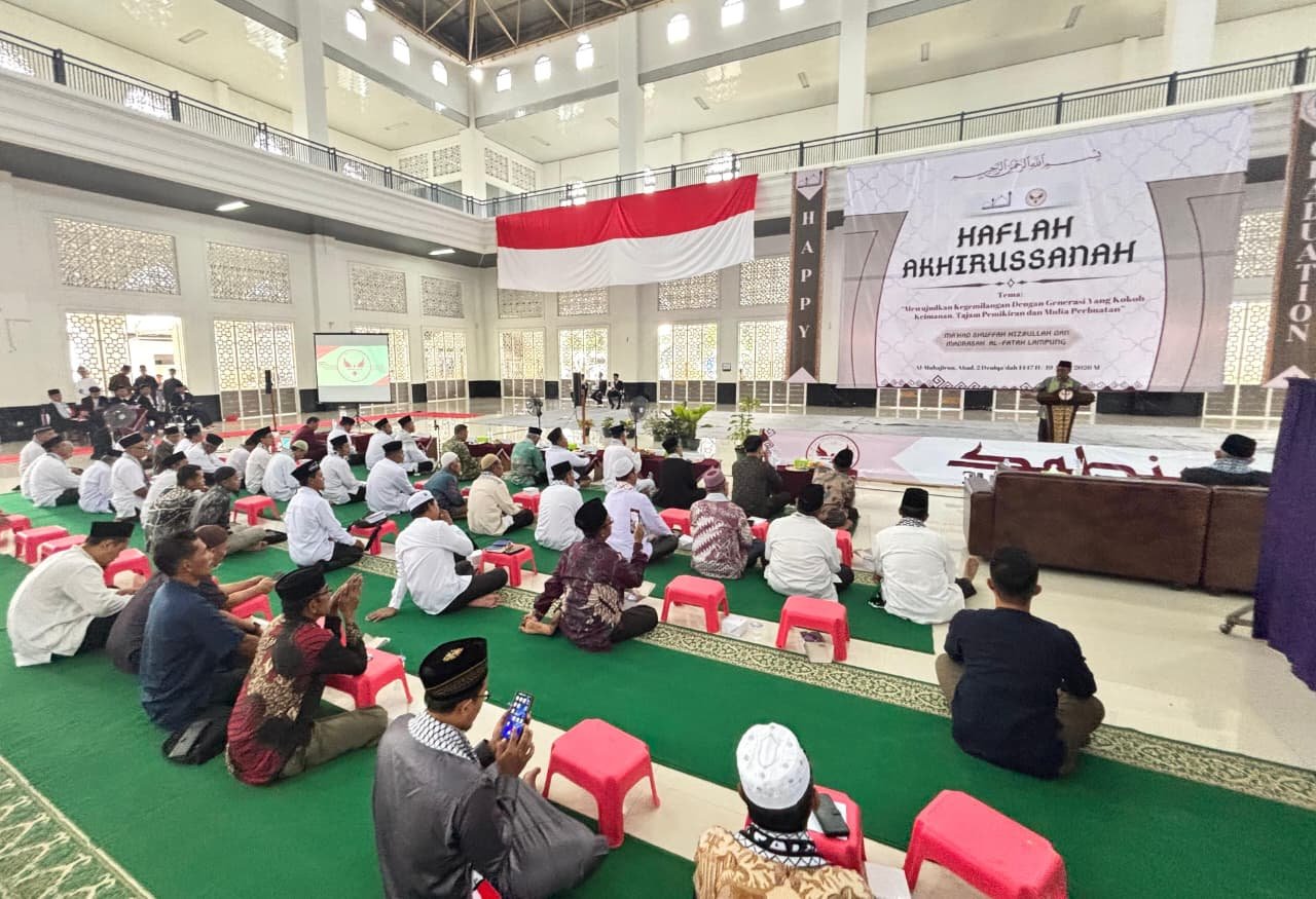 “Momen Haflah Tasyakur ini bukanlah akhir, melainkan gerbang awal bagi para santri untuk melangkah lebih jauh. Kalian lulus di saat Indonesia bersiap menuju Indonesia Emas 2045. Pemerintah Provinsi Lampung hadir dan tidak akan membiarkan kalian berjuang sendiri,” tegasnya.