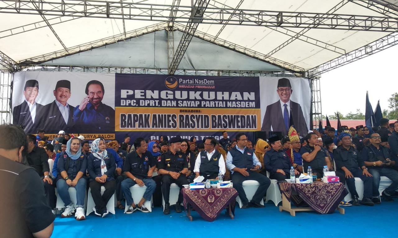 Lampung Tengah,benualampung.com – Pengukuhan Dewan Pimpinan Cabang (DPC), Dewan Pimpinan Ranting, dan sayap partai Nasdem se – kabupaten Lampung Tengah di laksanakan di Lapangan Untoro kecamatan Trimurjo kabupaten Lampung Tengah, dihadiri Anies Rasyid Baswedan. Sabtu (25/02/2023)