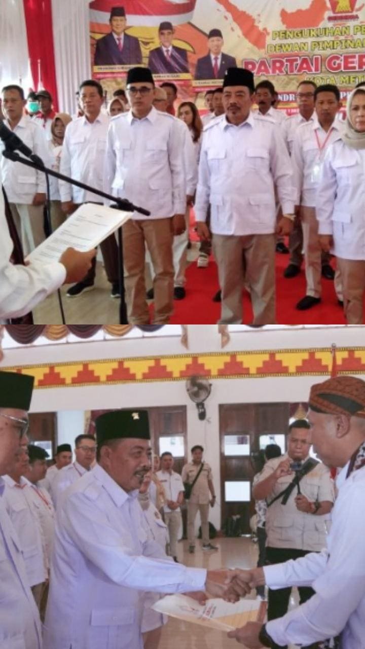 Metro,benualampung.com – Dewan Pimpinan Daerah (DPD) Partai Gerakan Indonesia Raya (Gerindra) Provinsi Lampung melantik dan mengukuhkan Drs.H.Sudarsono sebagai Ketua DPC Partai Gerindra Kota Metro yang berlangsubg di gedung Wisma