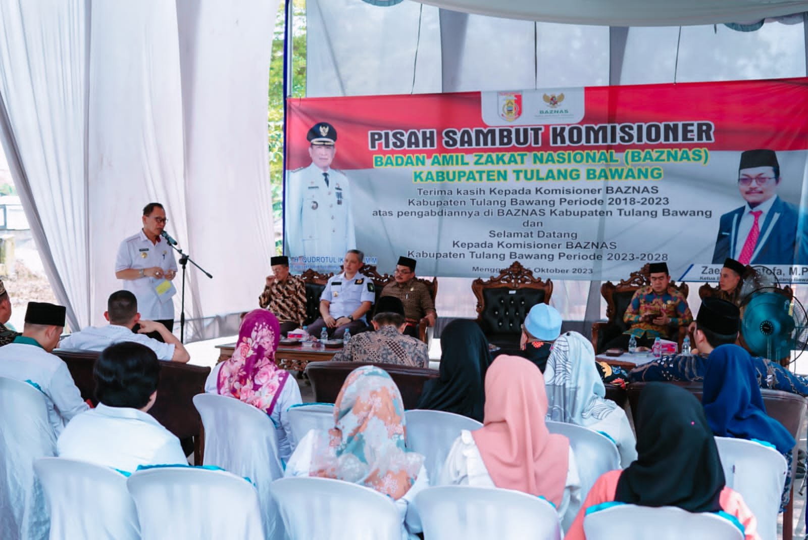 Sebelum menutup sambutannya, Pj Bupati menyampaikan agar Baznas tak henti bersinergi dengan Pemkab Tulang Bawang memajukan Tulang Bawang dan mewujudkan Kabupaten Tulang Bawang Sebagai Kabupaten Udang Manis (Unggul Damai Amana Nyaman Guyup Mandiri Agamis Natural Inovatif dan sejahtera)
