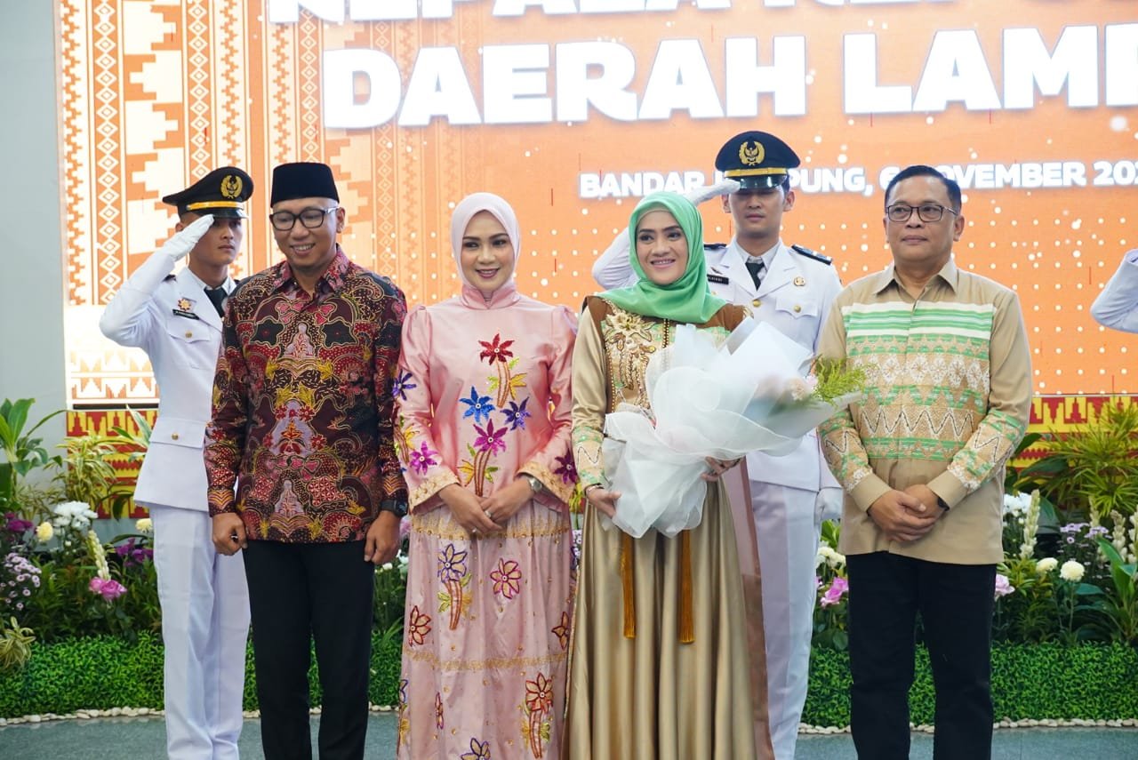 Kegiatan ini juga dihadiri oleh Wakil Gubernur Lampung, Ketua TP. PKK Provinsi Lampung, Jajaran Forkopimda Provinsi Lampung, Bupati/Walikota se-Provinsi Lampung, Pimpinan Instasi Vertikal, Rektor Perguruan Tinggi, Pimpinan Perbankan dan Ketua Organisasi.