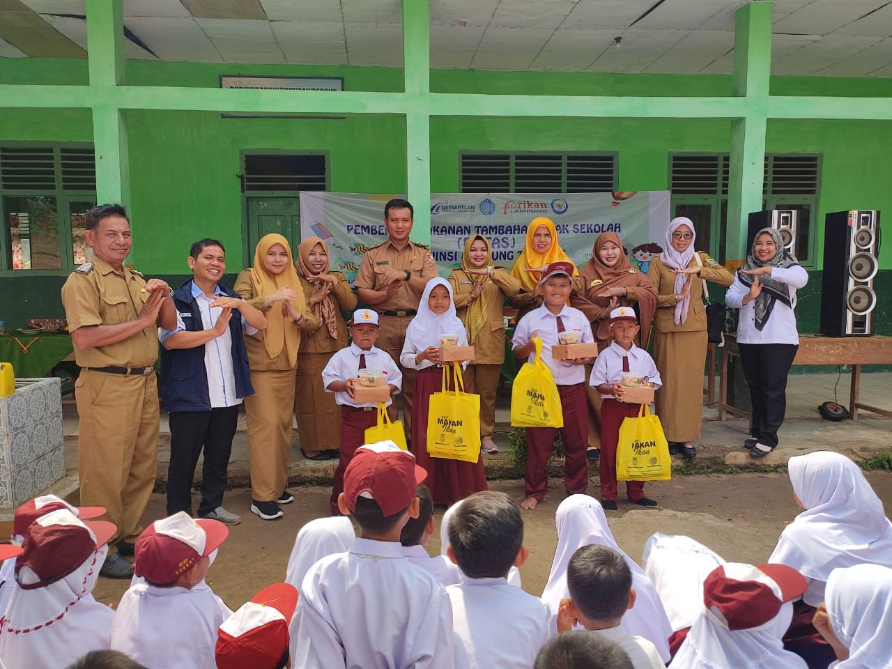 TUBABA, benualampung.com – Dinas Kelautan dan Perikanan (DKP) Provinsi Lampung bersama Dinas Perikanan Kabupaten Tulang Bawang Barat (Tubaba) melaksanakan kegiatan Pemberian makanan tambahan anak sekolah (PMTAS) kepada 150 siswa-siswi yang terdiri dari 137 siswa-siswi SDN 19 Tulang Bawang Tengah dan 13 siswa-siswi SDN 21 Tulang Bawang Tengah pada Senin (21/08/2023).