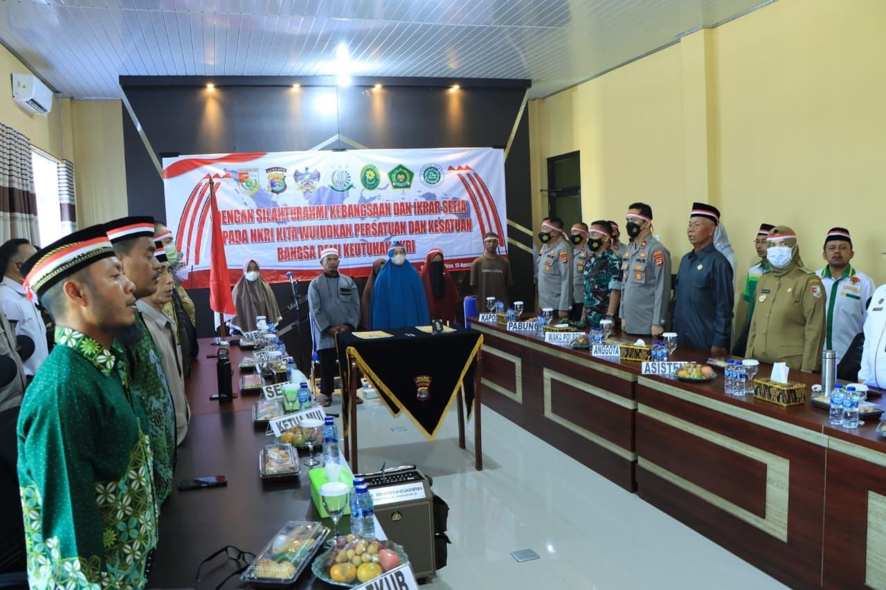 Polres Tulang Bawang Barat Polda Lampung menggelar Silaturahmi Kebangsaan dan Ikrar Setia Kepada Negara Kesatuan Republik Indonesia (NKRI) Sewilayah Kabupaten Tulang Bawang Barat di Aula Ruang Vicon Polres setempat, Senin (15/08/22).