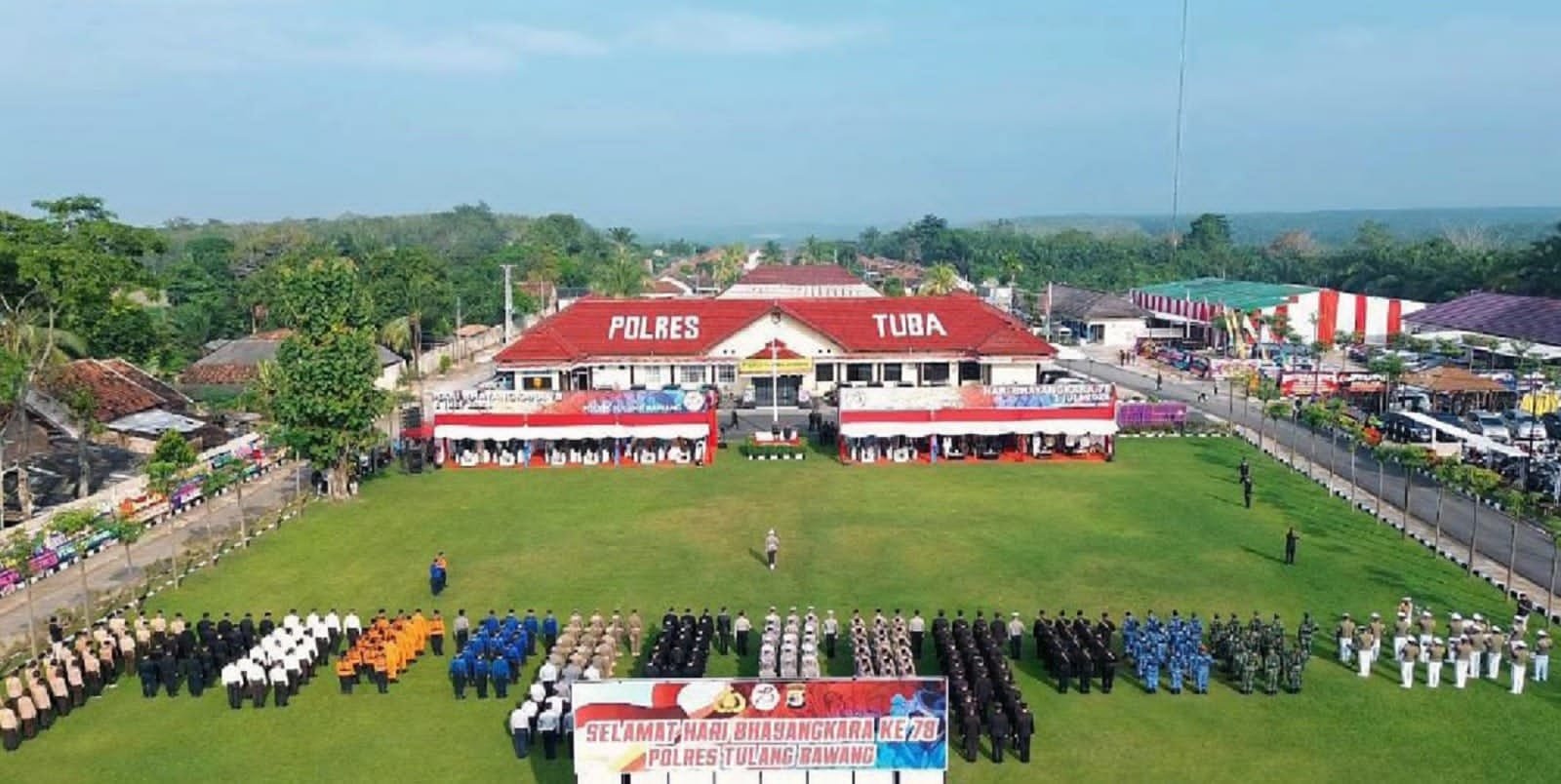 “Pada Puncak Peringatan Hari Bhayangkara ke-78 tahun 2024, Polres Tulang Bawang menggelar upacara dengan mengundang Pj. Bupati Tulang Bawang, Forkopimda, Para Tokoh dan masyarakat. Kegiatan upacara tersebut berlangsung dengan lancar dan penuh khidmat,” kata AKBP James, Selasa (02/07/2024).