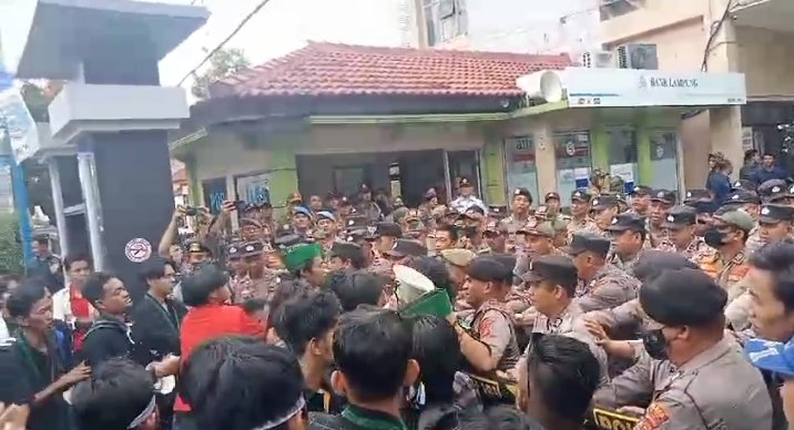 Usai melakukan unjuk rasa di bundaran tugu pena, ratusan mahasiswa bertolak ke kantor pemerintah Kota Metro. Sempat terjadi aksi saling dorong antara petugas yang berjaga dan mahasiswa yang melakukan unjuk rasa.