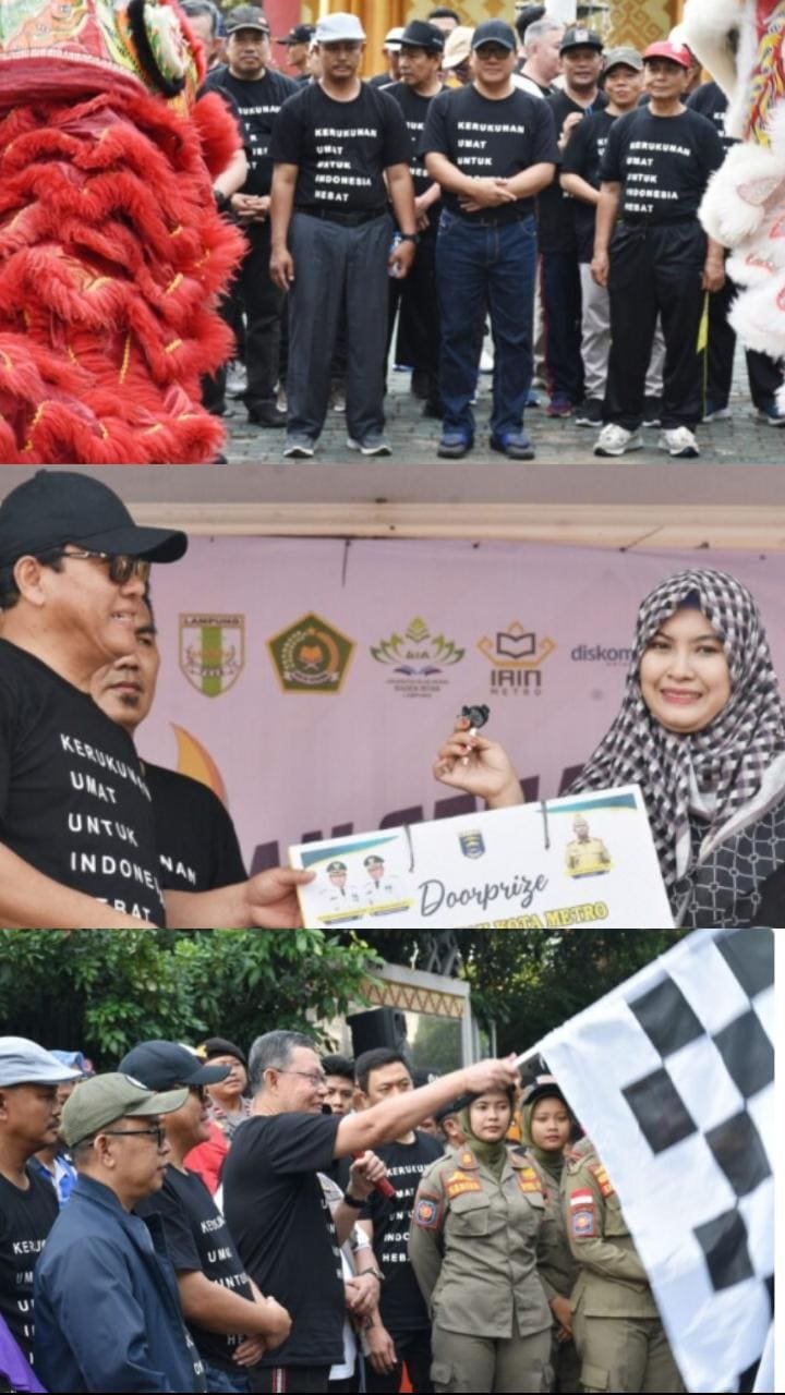 Metro,benualampung.com – Sekretaris Daerah Provinsi Lampung melepas 12.000 peserta Jalan Sehat Kerukunan FKUB se-Provinsi Lampung yang berlangsung di Depan Rumah Dinas Walikota Metro, Sabtu (14/01/2023).