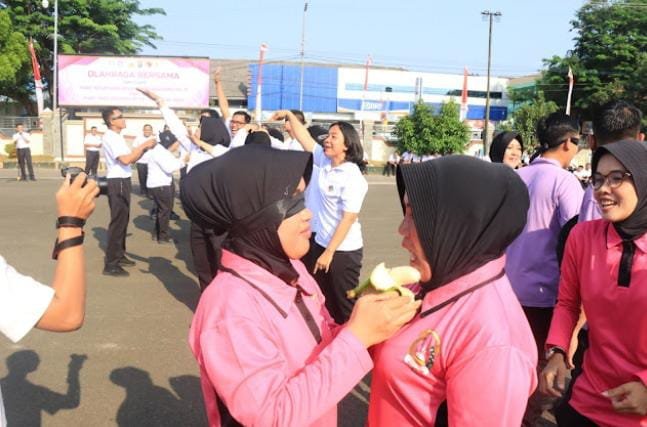 Sambut Hari Jadi Polwan Ke-75 Dan Hari Kesatuan Gerak Bhayangkari Ke-71 Polres Metro Gelar Olahraga Bersama
