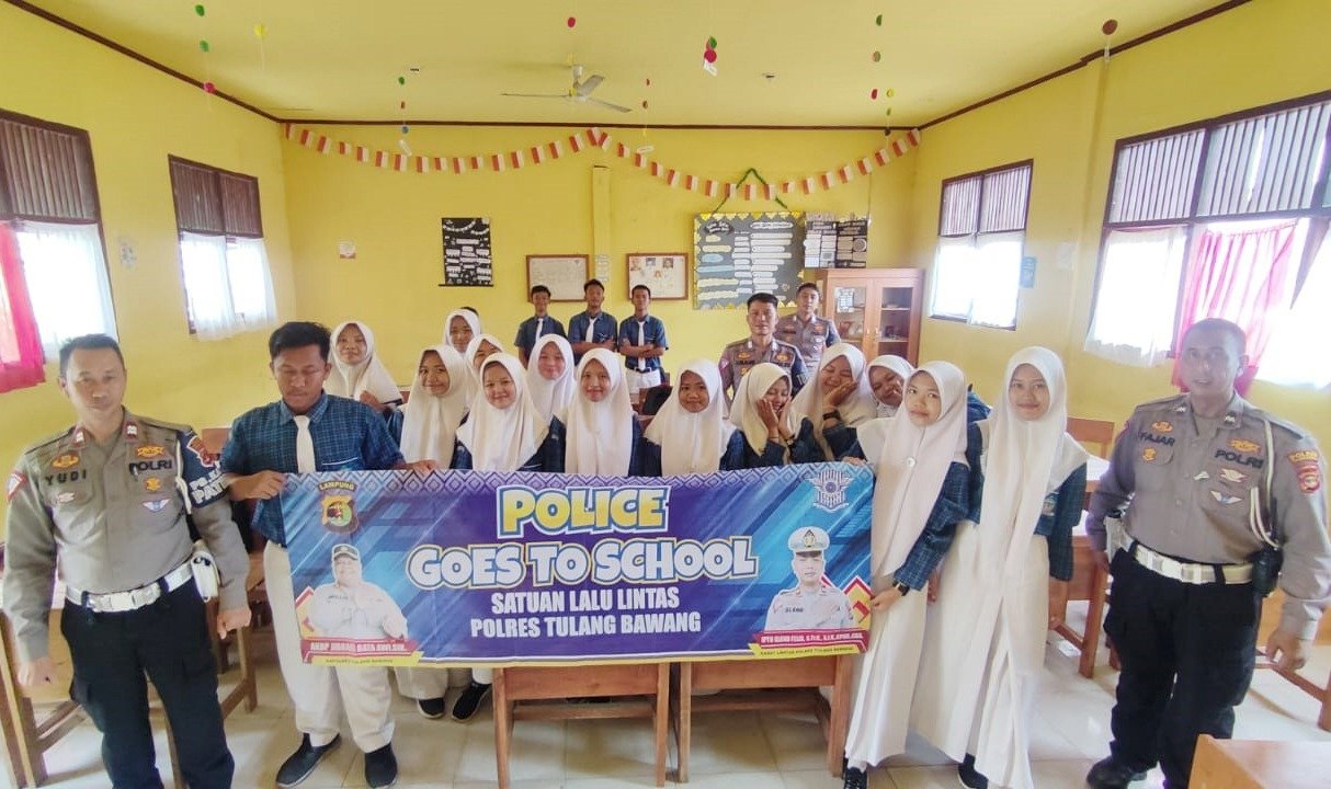 Tulang Bawang, benualampung.com – Satuan Lalu Lintas (Sat Lantas) Polres Tulang Bawang, Polda Lampung, menggelar kegiatan Police Goes To School untuk memberikan edukasi sejak dini kepada para pelajar sekolah menengah atas (SMA) yang ada di wilayah hukumnya.