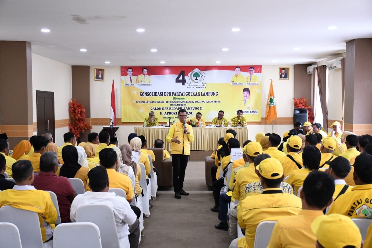 Tulang Bawang, benualampung.com -Sekretaris DPD Partai Golkar Lampung Hi. Ismet Roni, SH, MH, berikan semangat dan strategi kemenangan kepada Calon Legislatif (Caleg) Kabupaten Tulangbawang, Kabupaten Tulangbawang Barat, Kabupaten Mesuji, menghadapi pesta demokrasi Pemilihan Umum (Pemilu) 14 Februari 2024.