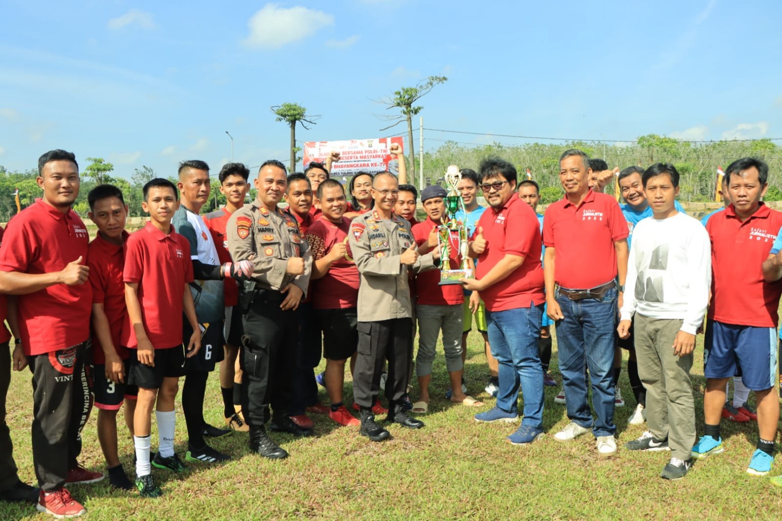 Semarak HUT Bhayangkara Ke-77 Polres Tulang Bawang Barat Bersama PWI Gelar Laga Persahabatan.