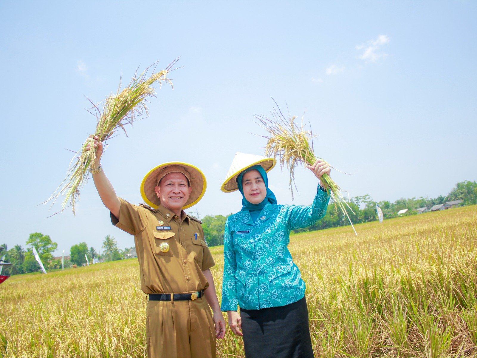 Dalam Kegiatan Ini Pejabat Bupati Tulang Bawang Qudrotul Ikhwan Di Dampingi Oleh Ketua TP PKK Kabupaten Tulang Bawang Herlinawati Qudrotul Secara Simbolis Melakukan Pemotongan Batang Padi Sebagai Bentuk Di Mulainya Panen Raya yang dilakukan Di Kampung Hargo Rejo Pada Tahun Ini.
