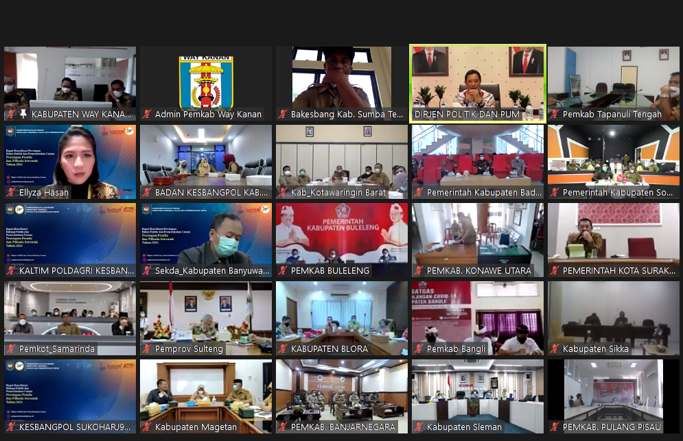WAY KANAN, benualampung.com – Sekretaris Daerah Kabupaten, Saipul, S.Sos.,M.Ip bersama Badan Kesatuan Bangsa dan Politik, Badan Perencanaan Pembangunan Daerah dan Badan Pengelola Keuangan dan Aset Daerah mengikuti Virtual Zoom Meeting Rapat Koordinasi Bidang Politik Pemerintahan dan Umum di Daerah Terkait Persiapan Pemilu Serta Pilkada Serentak Tahun 2024, Senin (01/03/2022) di Ruang Rapat Sekda Way Kanan.