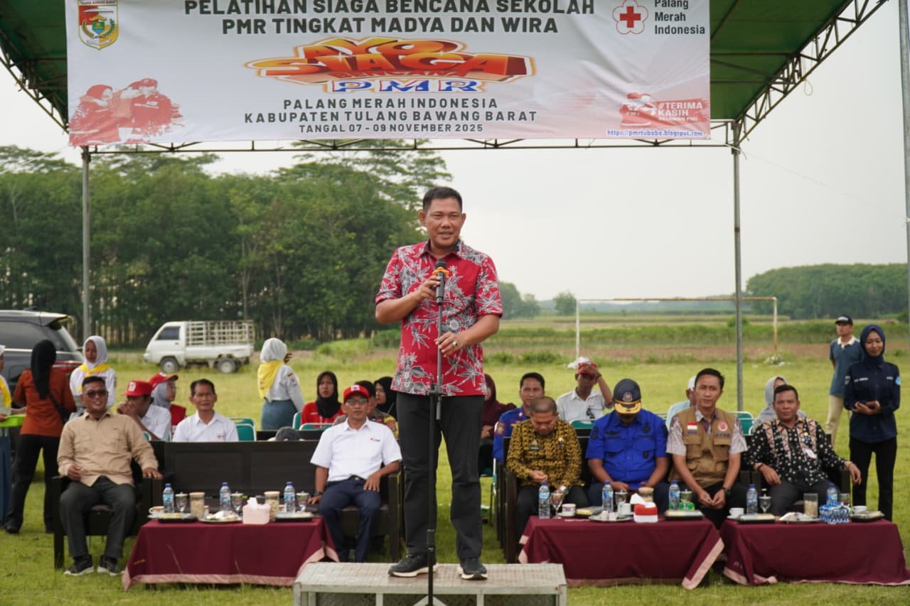 Tulang Bawang Barat, Benualampung.com — Wakil Bupati Tulang Bawang Barat secara resmi membuka kegiatan Pelatihan Siaga Bencana Sekolah Palang Merah Remaja (PMR) Tingkat Madya dan Wira, yang digelar di SMAN 2 Tumijajar, Kecamatan Tumijajar, Kabupaten Tulang Bawang Barat. Hari Jum’at (07/11/2025).