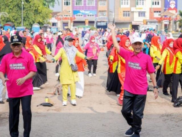 Selanjutnya, setelah proses upacara terlaksana, dilanjutkan oleh kegiatan senam bersama. (Vin)