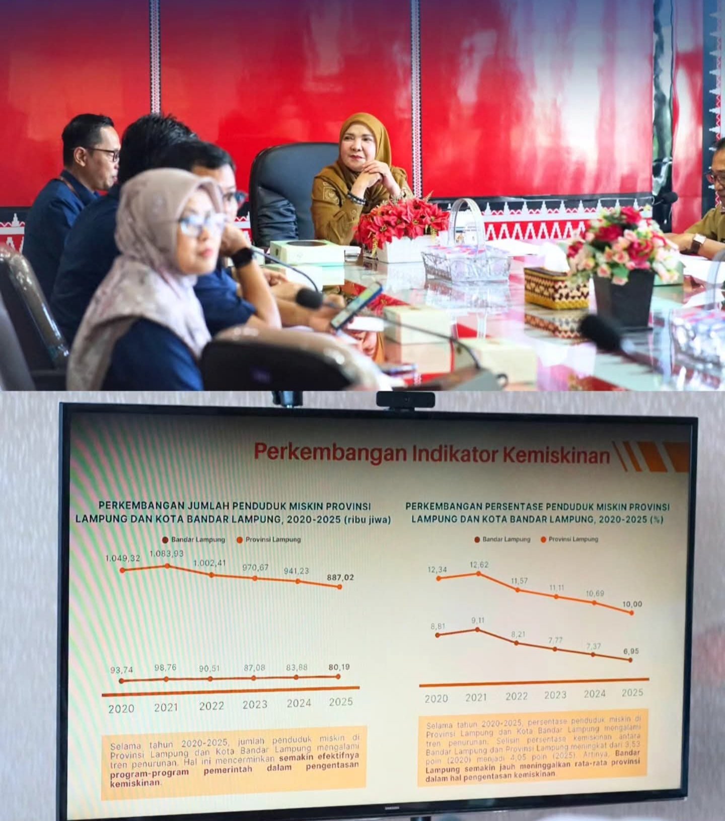 Bandar Lampung, Benualampung.com – Kota Bandar Lampung terus berupaya meningkatkan kualitas data statistiknya sebagai dasar perencanaan dan evaluasi pembangunan. Hal ini terungkap dalam audiensi antara Walikota Bandar Lampung, Hj. Eva Dwiana dan Badan Pusat Statistik (BPS) Kota Bandar Lampung agenda penyampaian angka kemiskinan di Kota Bandar lampung tahun 2025 di Ruang Kerja Walikota. Senin, (22/09/2025).